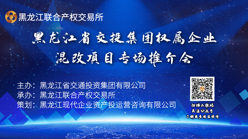 9月3日,由省國資(zi)委組織舉(ju)辦,由省產權交(jiao)易集團權屬企(qi)業黑龍江聯交(jiao)所搭建的省屬國企(qi)混改項目線上(shang)推(tui)介(jie)平臺正式啟(qi)動。率先對省交(jiao)通投(tou)資(zi)集團有限公司(si)(以下簡(jian)稱“交(jiao)投(tou)集團”)5戶(hu)權屬企(qi)業混改項目進行“云(yun)”推(tui)介(jie),通過(guo)產權資(zi)本市場(chang),引入(ru)優質社會資(zi)本,進一步深化交(jiao)投(tou)集團混合所有制改革,釋放發展活力(li),實現互(hu)利共贏,助力(li)我省國資(zi)國企(qi)改革高效高質量推(tui)進。