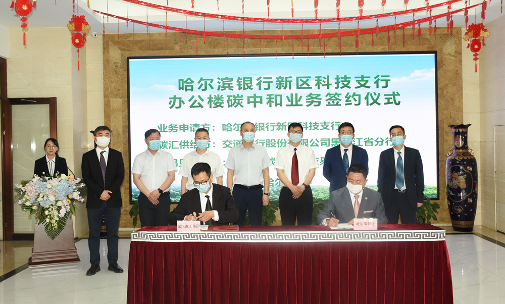 黑龍江碳排放權交易中(zhong)心在簽約儀式上為哈(ha)爾(er)濱銀行(xing)新區科技支行(xing)頒發了碳中(zhong)和證(zheng)明書。