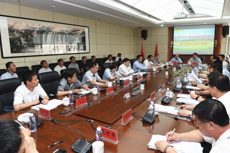 6月13日上午,全省農村承包地確權登記頒證工作匯報會在黑龍江省產權交易集團召開。黑龍江省人民政府副省長、黨組成員劉忻主持會議并講話;黑龍江省農委主任王金會,副主任喬延春,黑龍江省產權交易集團黨委書記、董事長孫光遠,省財政廳、省國土廳、省測繪地理信息局、省檔案館有關領導,全省13個市(地)主管農業副市長、農委主任參加了會議。