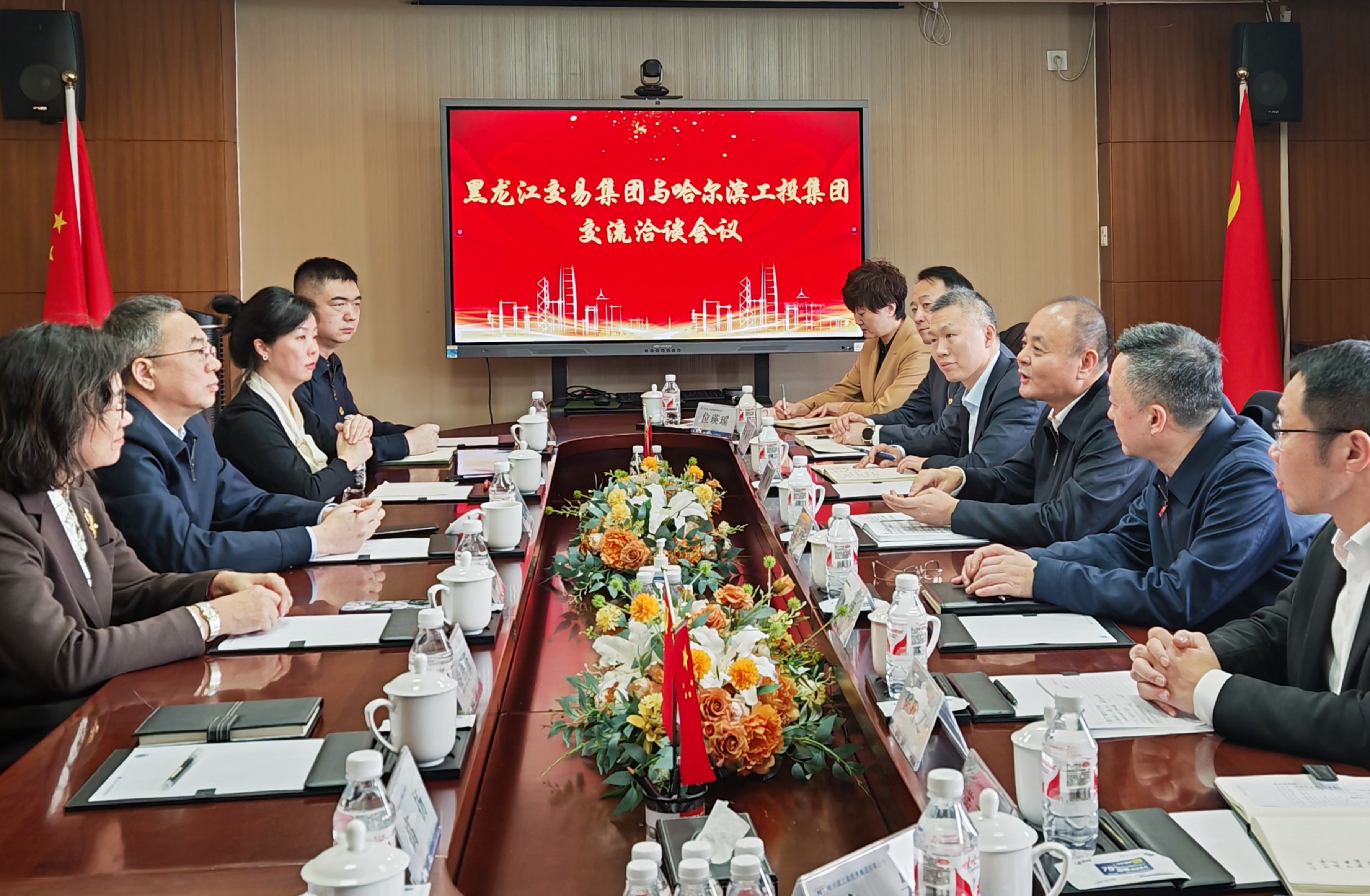 3月4日,交易集團黨委書記、董事長王立峰一行到哈爾濱工投集團進行座談交流,哈爾濱工投集團黨委書記、董事長趙志峰與王立峰一行進行座談。